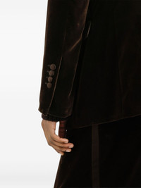 velvet trimmed single-breasted blazer Highlights - Dark brown - Velvet texture - Single-breasted closure - Notched lapel - Flap pockets Made in Italy Composition Outer: Cotton 90%, Silk 8%, Polyester 2% Lining: Silk 100% Washing instructions Read Manufacturer Guidelines