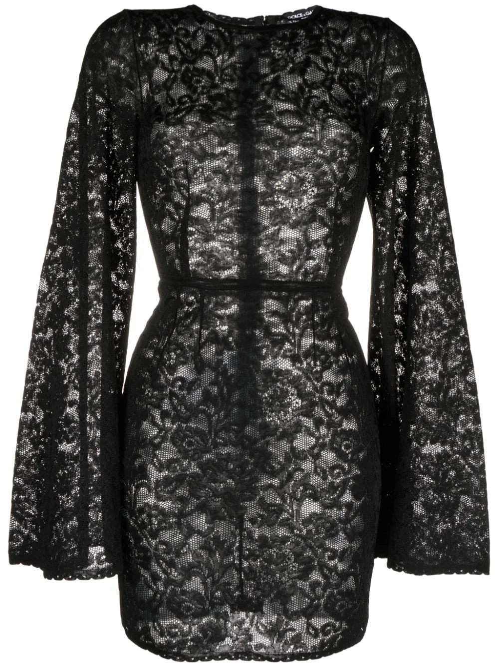 wide-sleeve lace minidress Highlights - Black - Mesh panelling - Lace overlay - Scallop collar - Scallop hem - Rear zip fastening - Long wide sleeves - Straight hem - Thigh-length Made in Italy Composition Viscose 76%, Polyamide 24% Washing instructions Dry Clean Only