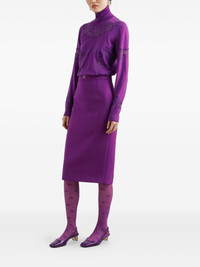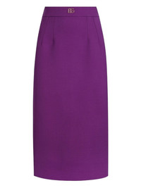 DNA wool midi skirt Highlights - Amaranth purple - Rear zip fastening - Gold-tone logo plaque - Straight hem - Mid-length Made in Italy Composition Lining: Silk 92%, Spandex/Elastane 8% Outer: Virgin Wool 100% Washing instructions Read Manufacturer Guidelines