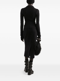 wool midi skirt black straight hem rear slit Made in Italy Composition Outer: Wool 100% Lining: Silk 92%, Elastane 8% Washing instructions Read Manufacturer Guidelines
