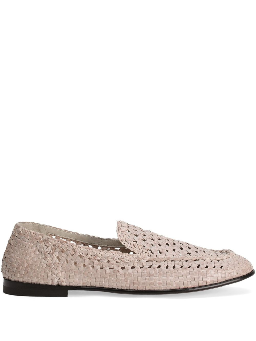 woven leather loafers Highlights - Beige - Slip-on style - Flat sole Made in Italy Composition Lining: Calf Leather 87%, Goat Skin 13% Outer: Goat Skin 100% Sole: Calf Leather 100%