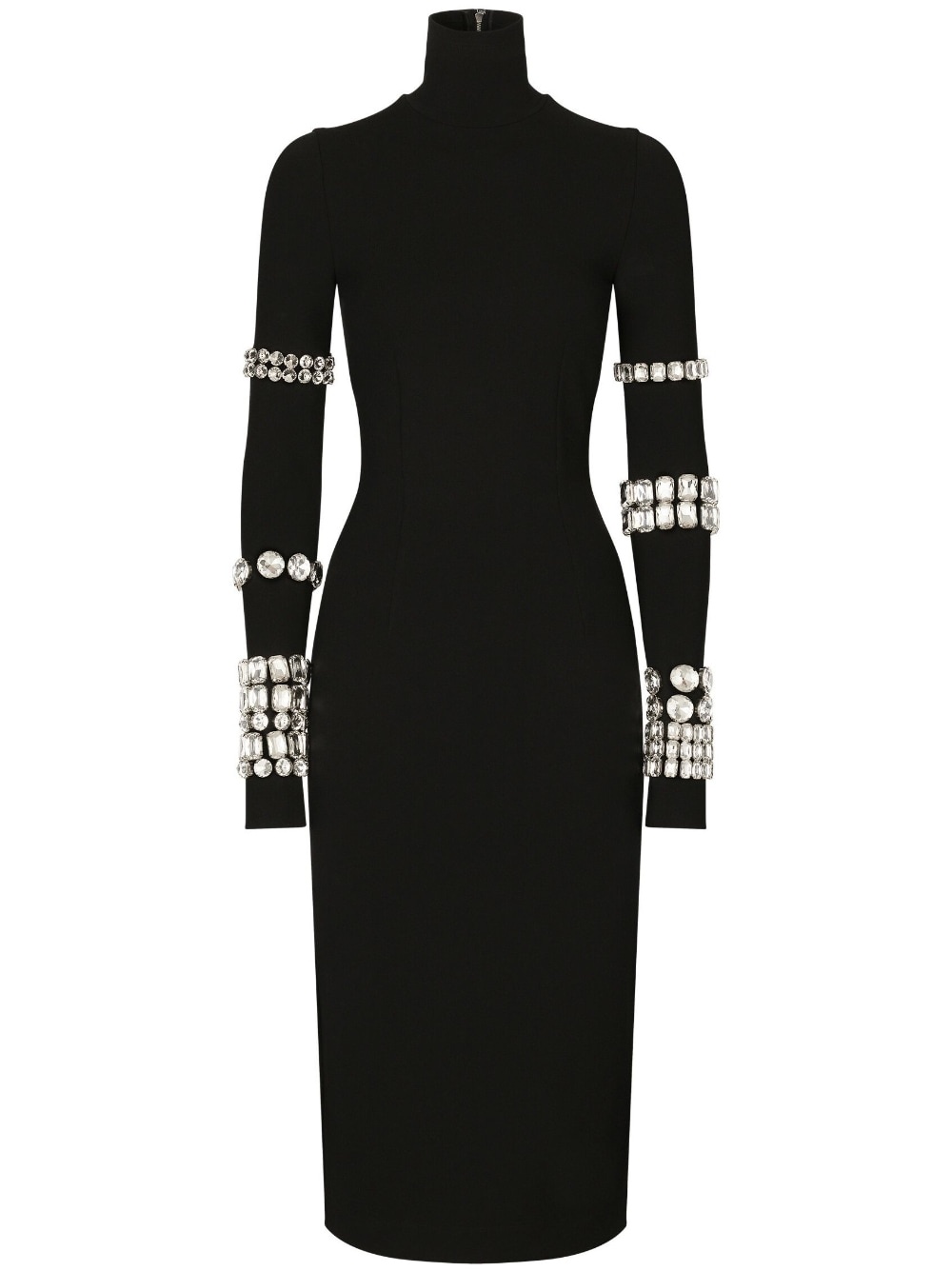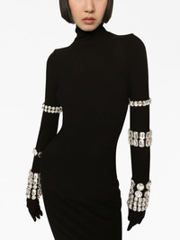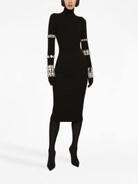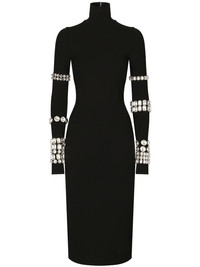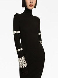KIM DOLCE&GABBANA Milano-rib embellished midi dress Kim Kardashian took the spotlight in Dolce & Gabbana's SS23 campaign. Part of this glamorous collection, this black midi dress is made from figure-hugging stretch-knit and embellished with crystal-studded bracelets along the exaggerated sleeves. Highlights - Black - Stretch-design - Rhinestone embellishment - High neck - Long sleeves - Straight hem Made in Italy Composition Rhinestone 100% Outer: Viscose 75%, Polyamide 17%, Spandex/Elastane 8% SIZE & FIT Measurement HIPS 30.7 in(78 cm) LENGTH 45.27 in(115 cm) WAIST 22.04 in(56 cm)
