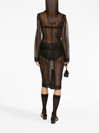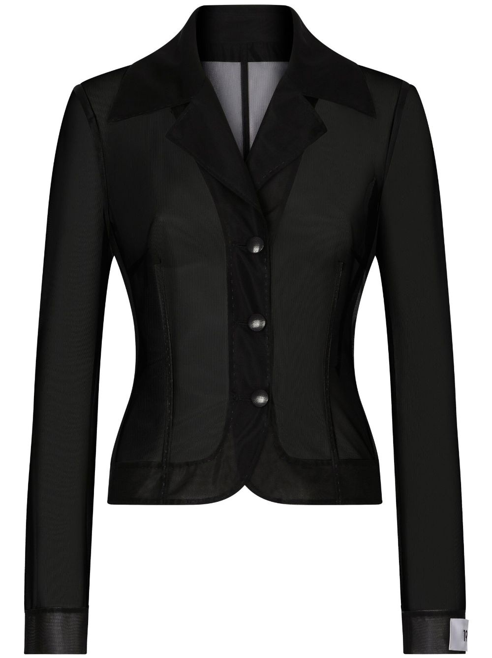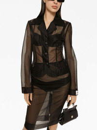 x Kim sheer single-breasted blazer Dolce & Gabbana teamed up with Kim Kardashian to create a reinterpretation of the brand's archives. Pinched from that collection, this blazer is defined by its sheer construction and fitted silhouette. It features a front button fastening and the signature Re-Edition tag on the sleeve. Highlights - Black - Semi-sheer construction - Notched lapels - Front button fastening - Long sleeves - Fitted waistline - Straight hem Made in Italy Composition Nylon 100%