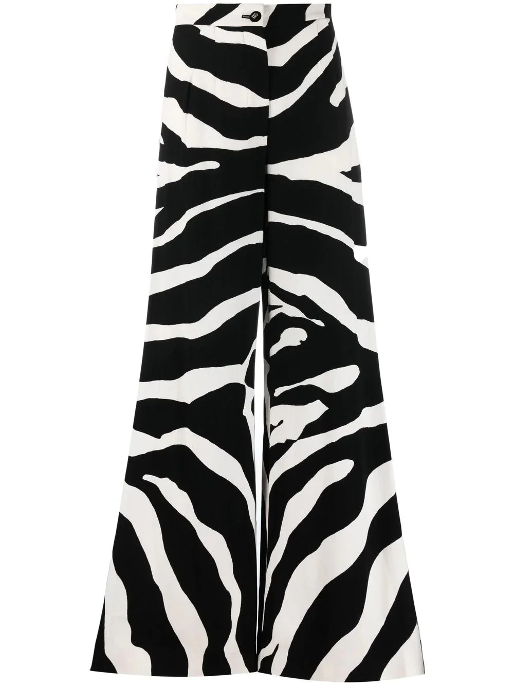 zebra-print flared trousers black/white stretch-design zebra print logo-buckle detail high waist wide leg flared Made in Italy Composition Viscose 95%, Spandex/Elastane 5% SIZE & FIT Model measurements Height 5 ft 10 in(1.78 m) Bust/Chest 30.31 in(77 cm) Hips 36.61 in(93 cm) Waist 24.8 in(63 cm) Measurement INSIDE LEG 34.25 in(87 cm) HIPS 39.37 in(100 cm) WAIST 25.19 in(64 cm) FittingInformation This piece fits true to size. We recommend you get your regular size Designed to be fitted at the waist and hips, loose over the leg Made with a mid-weight stretch fabric Washing instructions Dry Clean Only