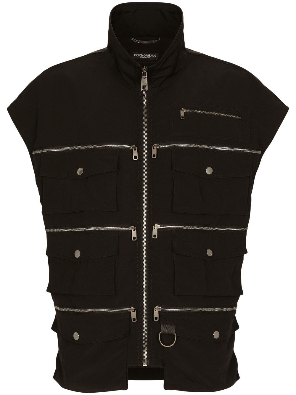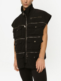 zip-detail gilet jet black decorative zip detailing high neck front zip fastening front flap pockets sleeveless straight hem Made in Italy Composition Outer: Nylon 100% Lining: Nylon 100%