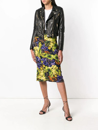 zipper trimmed biker jacket Dolce & Gabbana’s AW18 collection pays homage to Sicilian aristocracy. Noble inspired dress is given a contemporary update with street-style accents adding an urban edge to the Italian design duo’s trademark opulent aesthetic. This black lambskin leather zipper trimmed biker jacket features silver-tone hardware, a notched collar, a button over front zip fastening and a cropped length. Made in Italy Composition Outer: Lamb Skin 100% Lining: Polyester 97%, Spandex/Elastane 3% SIZE & FIT Model measurements Height 5 ft 10 in(1.79 m) Bust/Chest 33.46 in(85 cm) Hips 35.43 in(90 cm) Waist 25.19 in(64 cm) Washing instructions Specialist Cleaning