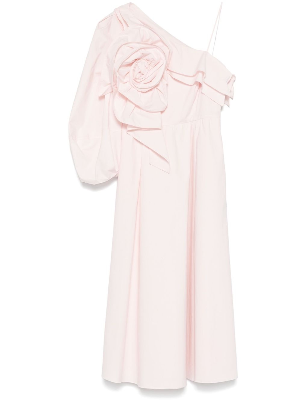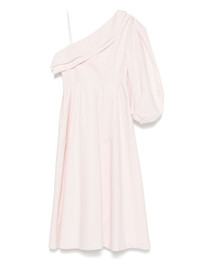 asymmetric poplin midi dress Highlights - Light pink - Concealed side zip fastening - Single long sleeve - Two side inset pockets - Ruffled detailing Imported Composition Cotton 96%, Elastane 4% Body: Cotton 96%
