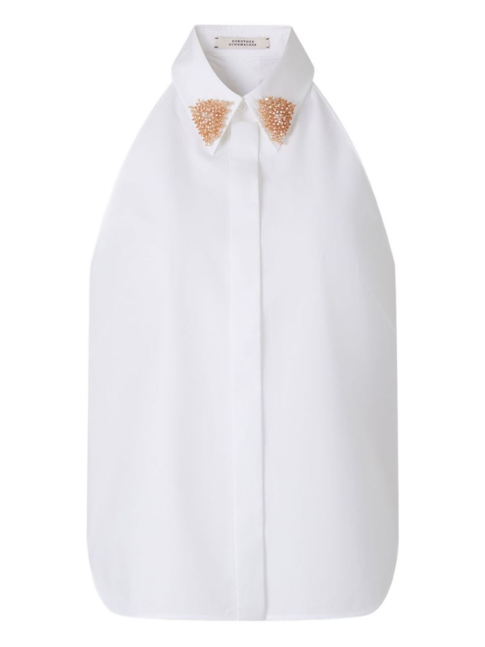 bead-embellishment halter blouse Highlights - White - Halter neck - Point collar - Beaded embellishment - Button front fastening - Sleeveless Made in Italy Composition Cotton 96%, Spandex/Elastane 4% Washing instructions Read Manufacturer Guidelines