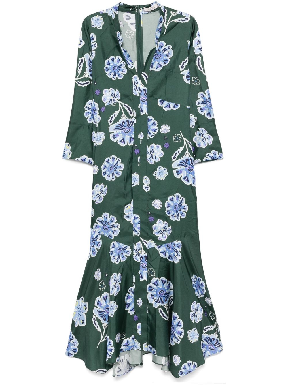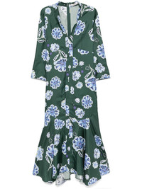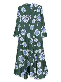Big Garden midi dress Highlights - Emerald green - Twill weave - Concealed rear zip fastening - All-over floral print - V-neck with band collar - Three-quarter length sleeves - Flared skirt - Mid-length Imported Composition Silk 100% Body: Polyester 100%