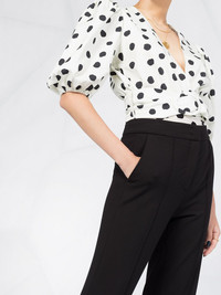 bootcut trousers Highlights - Black - Concealed front button fastening - Side pouch pockets - Button-fastening rear pockets - Slight bootcut Imported Composition Viscose 67%, Polyamide 28%, Elastane 5% SIZE & FIT Model measurements Height 5 ft 10 in(1.78 m) Bust/Chest 33.07 in(84 cm) Hips 33.07 in(84 cm) Waist 24.4 in(62 cm) FittingInformation This piece fits true to size. We recommend you get your regular size Designed to be fitted at the waist and hips, loose over the leg Made with a mid-weight stretch fabric Measurement INSIDE LEG 34.64 in(88 cm) HIPS 35.82 in(91 cm) WAIST 28.74 in(73 cm) Washing instructions Dry Clean Only