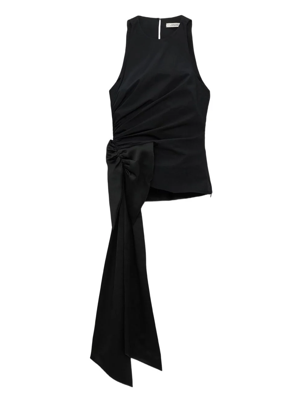 bow-detail draped top Highlights - Black - Gathered detail - Sleeveless - Round neck - Asymmetric bow Made in Italy Composition Cotton 96%, Elastane 4% Washing instructions Read Manufacturer Guidelines