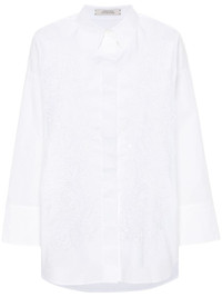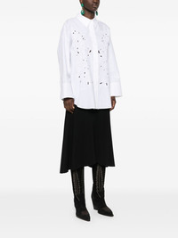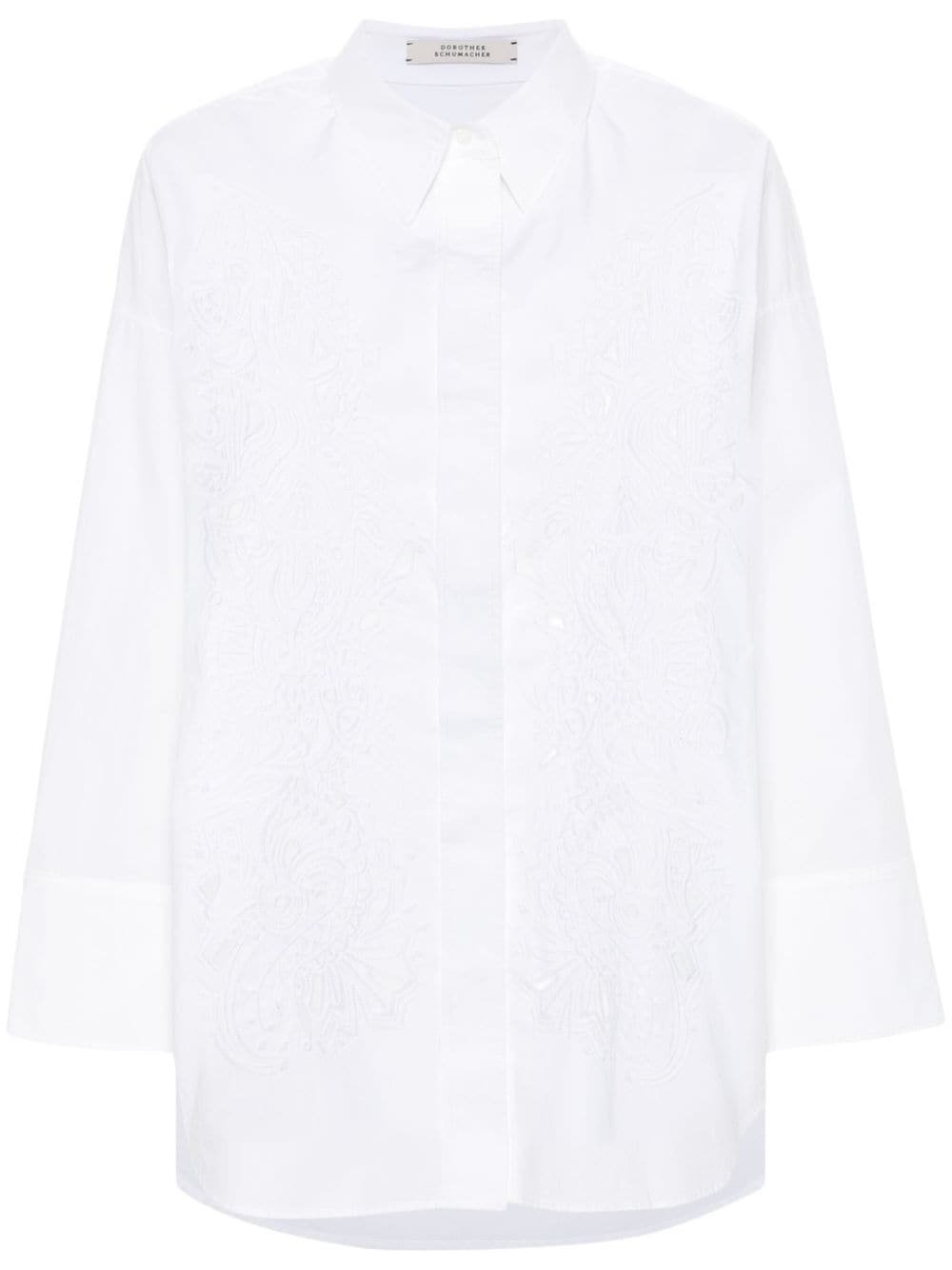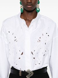 broderie-anglaise cotton shirt Highlights - White - Cotton blend - Poplin texture - Broderie anglaise - Box-pleat detail - Classic collar - Front button fastening - Buttoned cuffs - Long sleeves - Buttoned cuffs - Curved hem Imported Composition Cotton 96%, Elastane 4% SIZE & FIT Model measurements Height 5 ft 10 in(1.77 m) Bust/Chest 32.28 in(82 cm) Hips 35.03 in(89 cm) Waist 25.19 in(64 cm) FittingInformation Designed to be unstructured, offering a loose fit throughout Made from a midweight stretch fabric, this piece offers elasticity and flexibility when worn This piece fits true to size – take your usual size