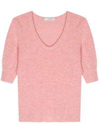 brushed fisherman's-knit top Highlights - Pink/white - Cashmere - Wool blend - Fisherman's knit - Brushed effect - Two-tone design - Scoop neck - Half-length sleeves with ribbed cuffs - Straight hem - Unlined Made in Italy Composition Cashmere 53%, Wool 27%, Silk 20% Washing instructions Dry Clean Only