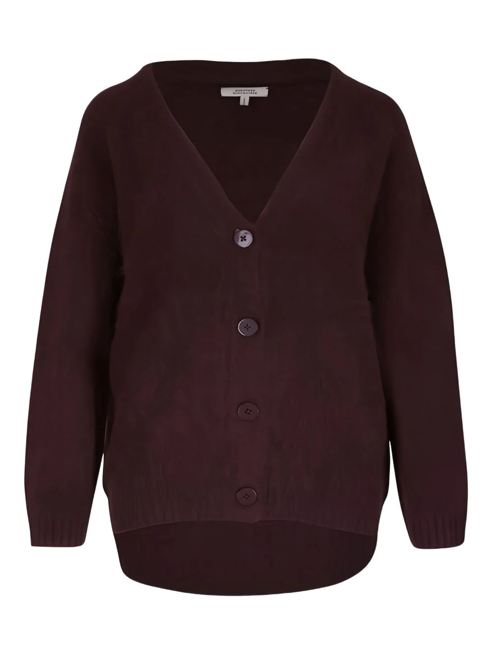 buttoned cardigan Highlights - Dark chestnut - Button fastening - V-neck - Long sleeves - Ribbed trims - Straight hem Made in United States Composition Virgin Wool 66%, Cashmere 28%, Polyamide 5%, Elastane 1% Washing instructions Dry Clean Only