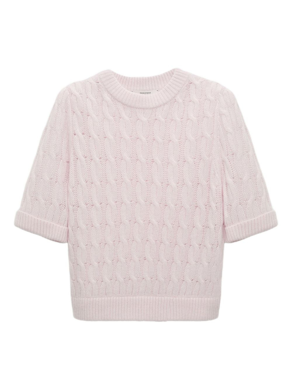 cable-knit short-sleeve sweater Highlights - Light pink - Cable knit - Short sleeves - Round neck - Cropped Imported Composition Polyamide 35%, Lyocell 30%, Wool 20%, Alpaca 15% Washing instructions Read Manufacturer Guidelines