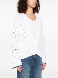 contrast-trim cardigan Highlights - White - Front button fastening - V-neck - Long sleeves Imported Composition Body: Cotton 44% SIZE & FIT Model measurements Height 5 ft 10 in(1.79 m) Bust/Chest 31.88 in(81 cm) Hips 35.43 in(90 cm) Waist 23.62 in(60 cm) FittingInformation Designed to be unstructured, offering a loose fit throughout Made with a midweight knit, this piece offers some stretch