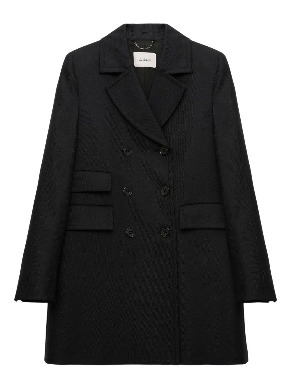 double-breasted felted coat Highlights - Black - Double-breasted button fastening - Notched lapels - Three side flap pockets Imported Composition Virgin Wool 100% Washing instructions Read Manufacturer Guidelines