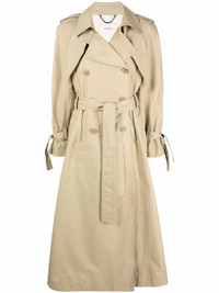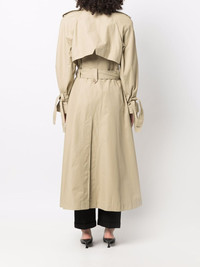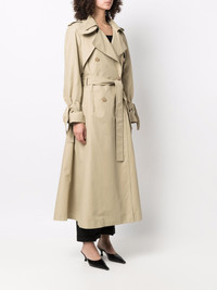 double-breasted trench coat beige cotton double-breasted button fastening belt loops belted waist button fastening at the shoulder notched collar long sleeves belted cuffs A-line long length straight hem Imported Composition Outer: Cotton 59%, Polyamide 41% Lining: Cotton 100% Body: Cotton 59% SIZE & FIT Model measurements Height 5 ft 10 in(1.79 m) Bust/Chest 31.88 in(81 cm) Hips 35.43 in(90 cm) Waist 23.62 in(60 cm) FittingInformation This piece fits true to size. We recommend you get your regular size Cut for a loose fit Made with a mid-weight non-stretch fabric Washing instructions Dry Clean Only