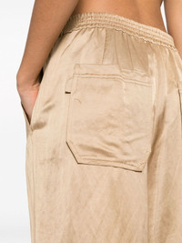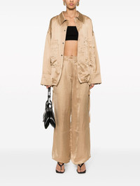 Slouchy Coolness straight-leg trousers Highlights - Light brown - Satin weave - Elasticated waistband - Two side inset pockets - Two rear patch pockets - Decorative strap to the side - Drawstring cuffs - Wide leg - Front button and zip fastening Imported Composition Viscose 42%, Hemp 38%, Cotton 20% SIZE & FIT Model measurements Height 5 ft 10 in(1.77 m) Bust/Chest 31.88 in(81 cm) Hips 36.22 in(92 cm) Waist 24.01 in(61 cm) FittingInformation Designed with a wide-leg cut, these trousers allow for a close fit at the waist and offer a loose and roomy fit over the leg The internal drawstring at the hem allows for fitted preferences at the ankle Made from a midweight non-stretch fabric This piece fits true to size – take your usual size Washing instructions Dry Clean Only