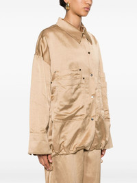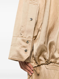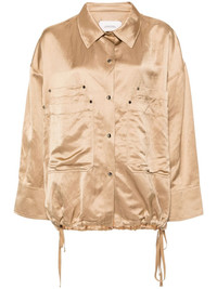 drawstring-hem shirt jacket Highlights - Light brown - Satin weave - Pointed flat collar - Drop shoulder - Long sleeves - Press-stud fastening cuffs - Four layered front patch pockets - Drawstring hem - Front press-stud fastening Imported Composition Viscose 42%, Hemp 38%, Cotton 20% SIZE & FIT Model measurements Height 5 ft 10 in(1.77 m) Bust/Chest 31.88 in(81 cm) Hips 36.22 in(92 cm) Waist 24.01 in(61 cm) FittingInformation Designed to be unstructured, offering a loose fit throughout The internal drawstring at the hem allows for fitted preferences Made from a midweight non-stretch fabric This piece fits true to size – take your usual size Washing instructions Dry Clean Only