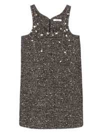 embellished mini dress Highlights - Dark brown - A-line shape - Sleeveless - Embellishment - Back zip fastening Imported Composition Outer: Wool 42%, Acrylic 25%, Polyester 20%, Polyamide 6%, Other fibres 3% Lining: Polyester 94%, Lyocell 6% Washing instructions Dry Clean Only