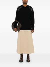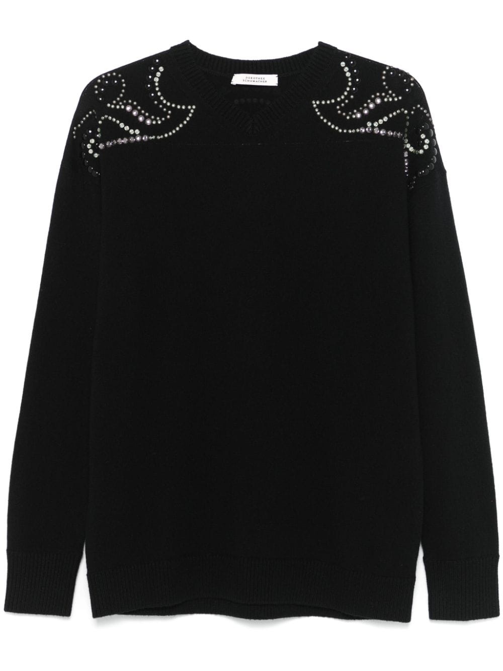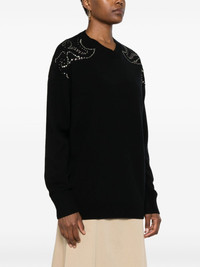 Embellished Statements sweater Highlights - Black - Virgin wool-cashmere blend - Knitted construction - Stud detailing - Crew neck - Drop shoulder - Long sleeves - Ribbed cuffs and hem - Straight hem Imported Composition Virgin Wool 70%, Cashmere 30% SIZE & FIT Model measurements Height 5 ft 11 in(1.8 m) Bust/Chest 31.49 in(80 cm) Hips 36.61 in(93 cm) Waist 24.4 in(62 cm) FittingInformation Designed to be unstructured, offering a loose fit throughout Made with a midweight knit, this piece offers some stretch