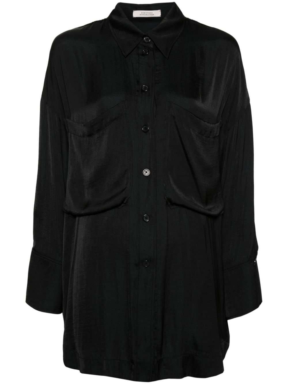 Fantasy satin shirt Highlights - Black - Satin finish - Classic collar - Two chest patch pockets - Long sleeves - Buttoned cuffs - Curved hem - Front button fastening Imported Composition Polyester 100% SIZE & FIT Model measurements Height 5 ft 9 in(1.75 m) Bust/Chest 34.64 in(88 cm) Hips 36.61 in(93 cm) Waist 26.37 in(67 cm) FittingInformation Designed for an oversized fit, offering additional room throughout Made from a lightweight non-stretch fabric This piece fits true to size – take your usual size