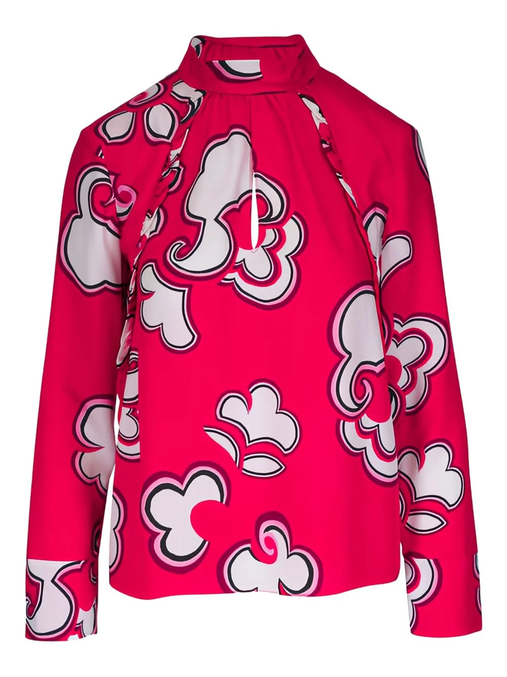 floral blouse Highlights - Red and white - Floral print - Tie fastening - Shoulder pads Made in United States Composition Lyocell 53%, Viscose 47% Washing instructions Dry Clean Only