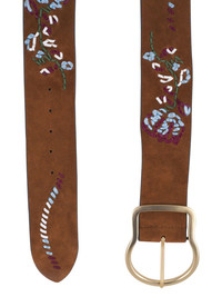 floral-embroidered belt Highlights - Brown - Buckle fastening - Punched holes - Adjustable fit Made in United States Composition Calf Suede 100%