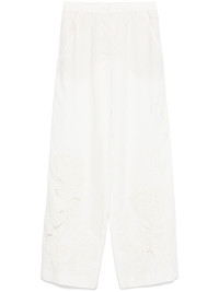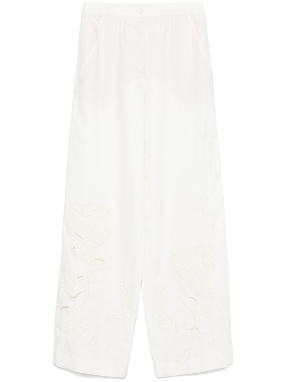 floral-embroidered trousers Highlights - White - Concealed fly and button fastening - Two diagonal pockets to the sides - Two rear patch pockets Imported Composition Linen/Flax 100%