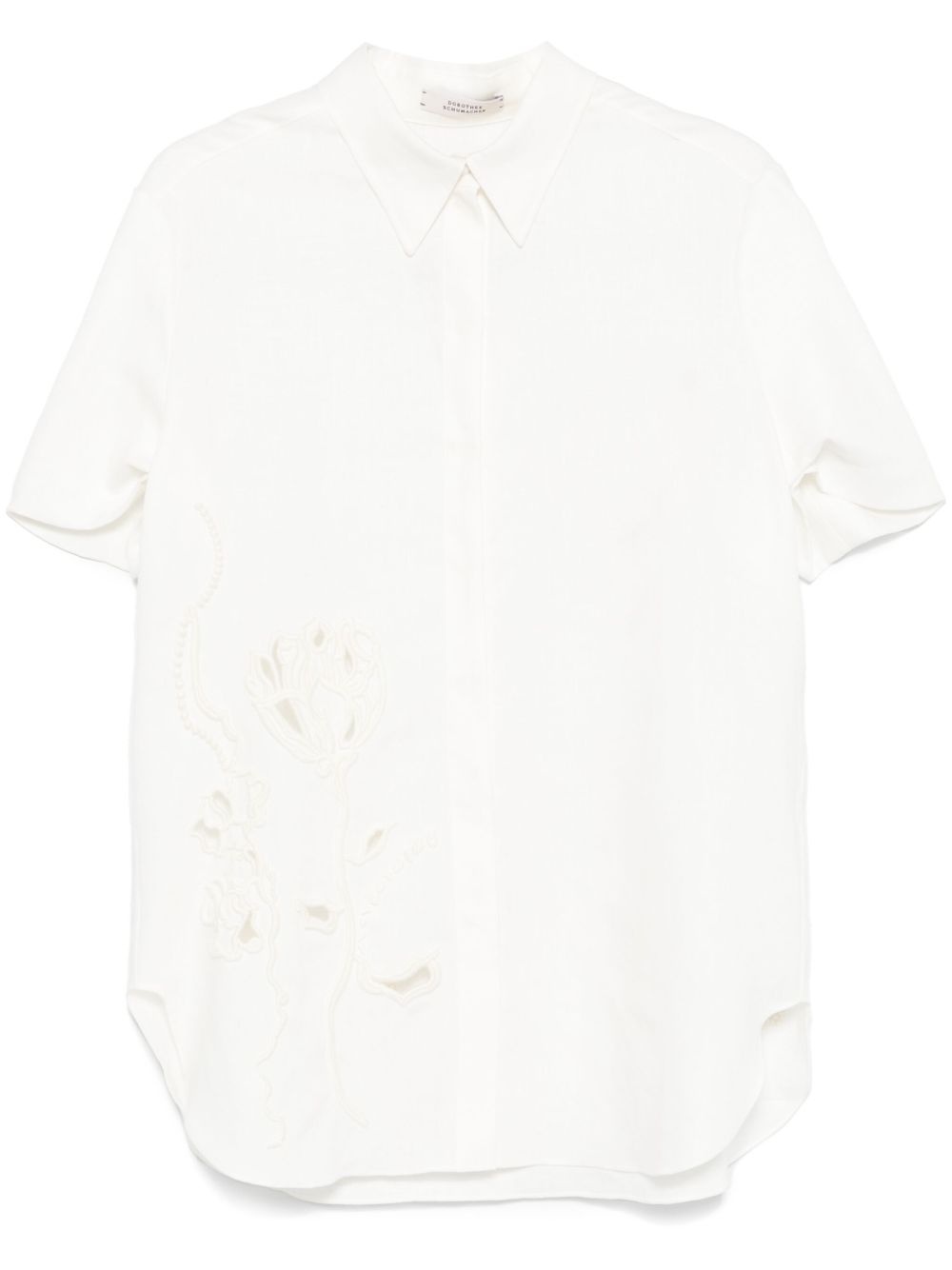 floral-embroidery shirt Highlights - White - Concealed front button fastening - Pointed flat collar - Short sleeves - Curved hem Imported Composition Linen/Flax 100% Body: Linen/Flax 100% SIZE & FIT Model measurements Height 5 ft 10 in(1.77 m) Bust/Chest 29.92 in(76 cm) Hips 34.25 in(87 cm) Waist 23.62 in(60 cm) FittingInformation Designed to be unstructured, offering a loose fit throughout Made from a midweight non-stretch fabric