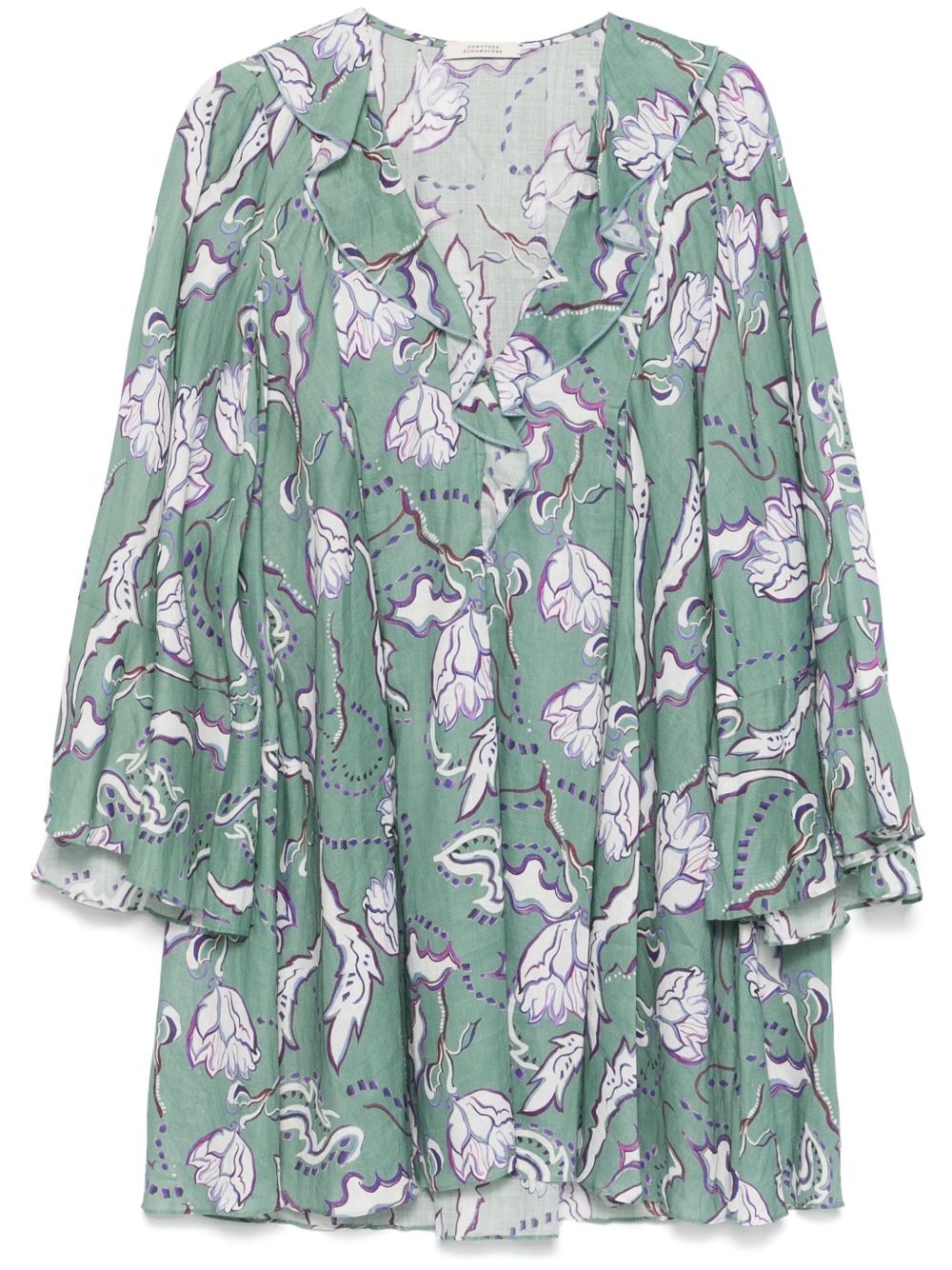 floral-print crinkled-effect mini dress Highlights - Jade green - V-neck - Long wide sleeves - Ruffled detailing Imported Composition Ramie 100%