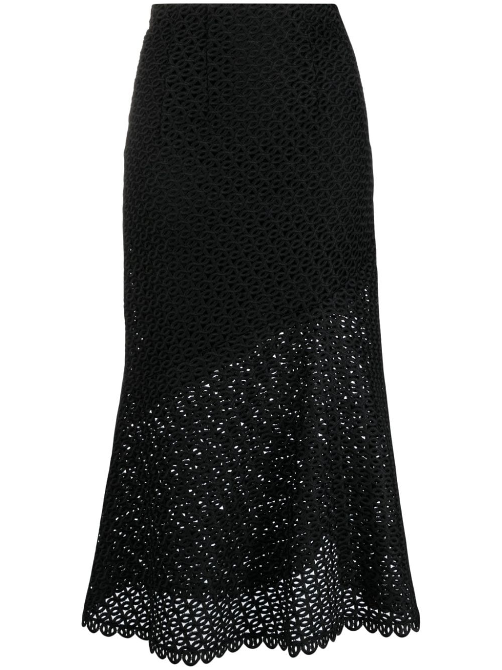 Graphic Performance macrame midi skirt Highlights - Jet black - Full lining - Pattern-lace detailing - Macrame detailing - Seam detailing - High-waisted - Concealed rear zip fastening - Mid-calf length - Scallop hem Imported Composition Lining: Acetate 68%, Viscose 32% Outer: Polyester 100% SIZE & FIT Model measurements Height 5 ft 10 in(1.79 m) Bust/Chest 33.07 in(84 cm) Hips 35.82 in(91 cm) Waist 24.01 in(61 cm) FittingInformation This midi-length skirt is intended to be worn high on the waist Made from a midweight non-stretch fabric This piece fits true to size – take your usual size Washing instructions Machine Wash