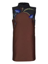 high-neck embroidered dress Highlights - Brown - High neck - Sleeveless - Embroidered flower - Back zip fastening Imported Composition Polyester 91%, Polyamide 9% Washing instructions Hand Wash