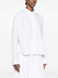 lace-detail shirt Highlights - White - Concealed front button fastening - Buttoned-cuff sleeves - Curved hem Made in United States Composition Cotton 96%, Elastane 4% Body: Cotton 96% SIZE & FIT Model measurements Height 5 ft 10 in(1.77 m) Bust/Chest 29.92 in(76 cm) Hips 34.25 in(87 cm) Waist 23.62 in(60 cm) FittingInformation Designed to be unstructured, offering a loose fit throughout Made from a midweight stretch fabric, this piece offers elasticity and flexibility when worn