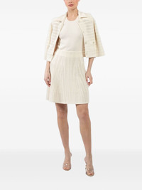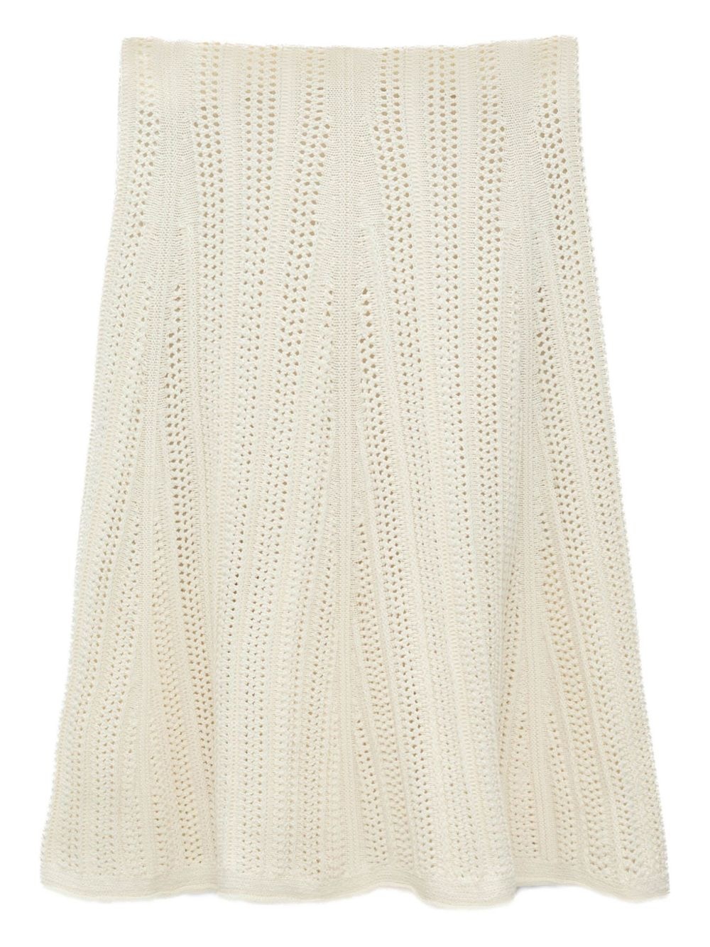 open-knit mini skirt Highlights - White - Open knit - A-line shape Imported Composition Cotton 68%, Polyamide 30%, Elastane 2% Washing instructions Read Manufacturer Guidelines