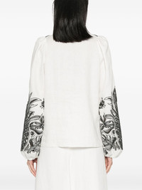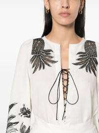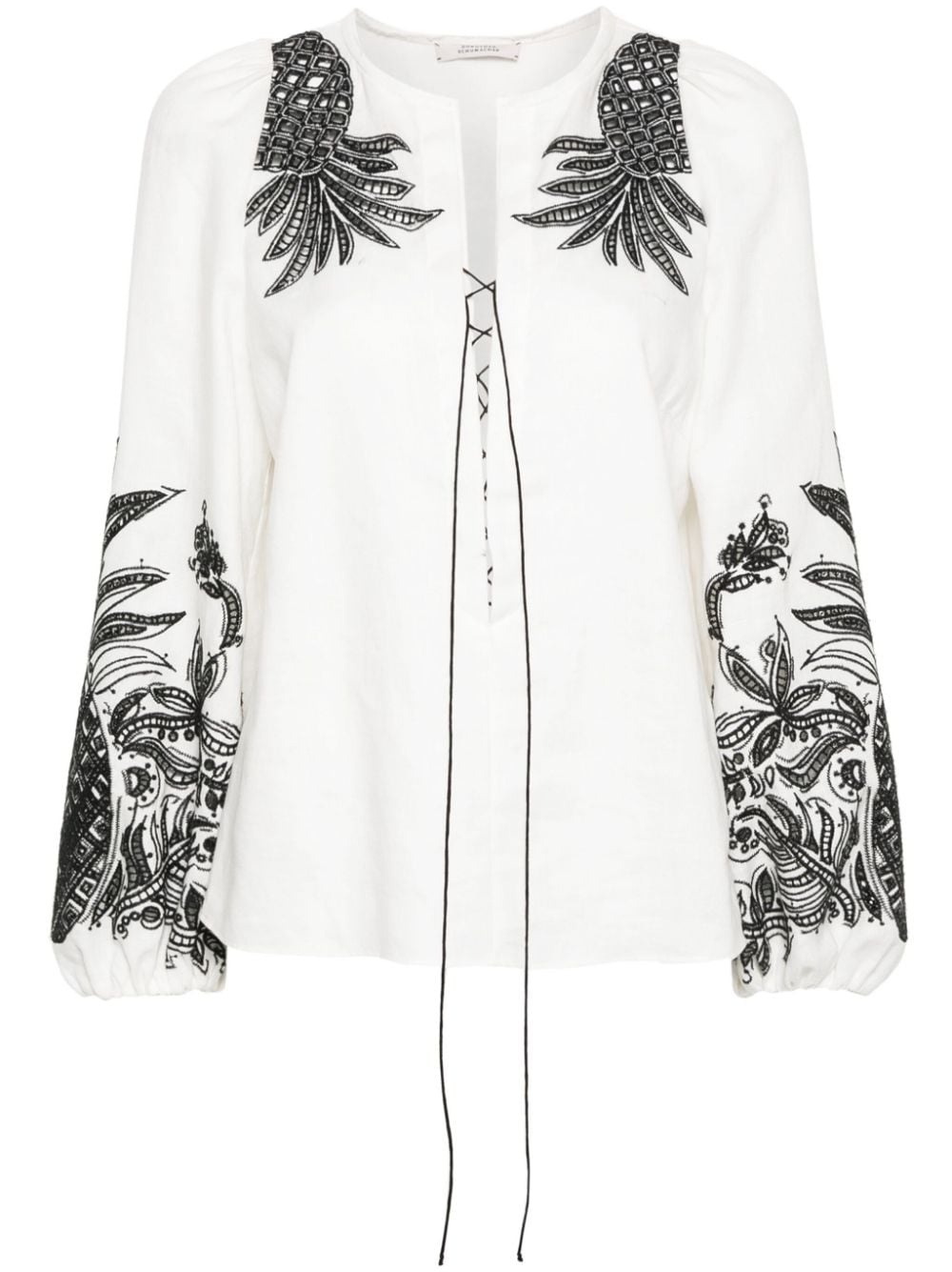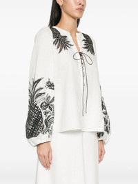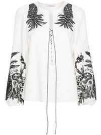 pineapple embroidery lace-up linen blouse Highlights - White/black - Linen/cotton - Signature pineapple motif - Collarless - Front lace-up fastening - Long puff sleeves - Elasticated cuffs - Straight hem Imported Composition Lining: Cotton 100% Outer: Linen/Flax 100% Washing instructions Dry Clean Only