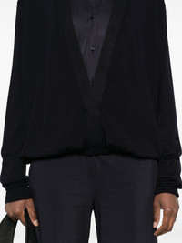 plunging-neck sweater Highlights - Navy blue - Fine knit - Plunging v-neck - Drop shoulder - Long sleeves - Ribbed cuffs - Unlined - Elasticated hem Imported Composition Virgin Wool 100% SIZE & FIT Model measurements Height 5 ft 11 in(1.8 m) Bust/Chest 31.49 in(80 cm) Hips 36.61 in(93 cm) Waist 24.4 in(62 cm) FittingInformation Designed for a relaxed fit, this piece allows for comfort and movement when worn Made with a lightweight knit, this piece offers some stretch