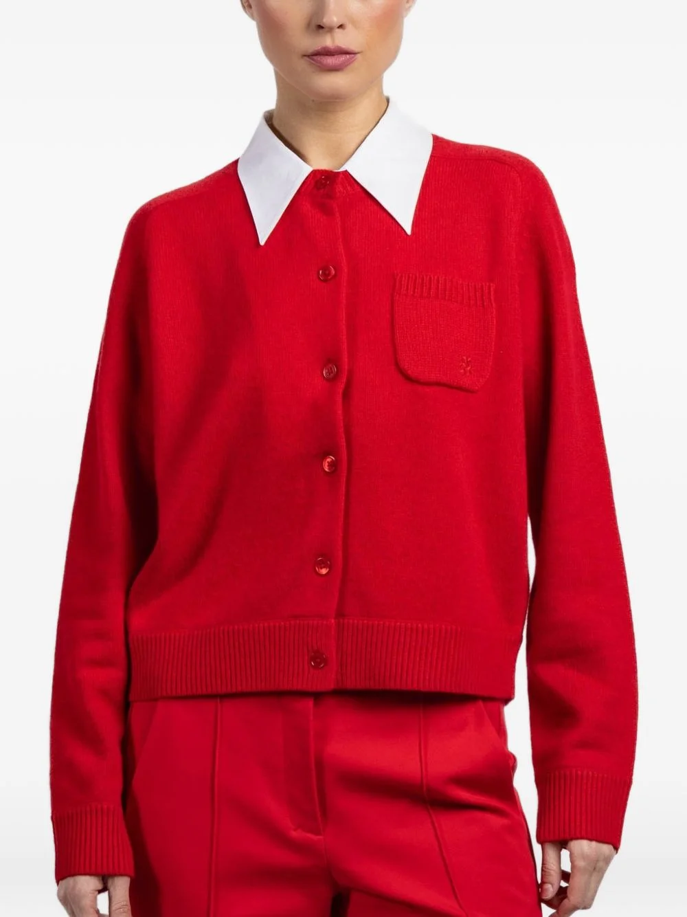 Pocket buttoned cardigan Highlights - Red - Chest pocket - Crew neck - Long sleeves - Button fastening - Embroidered detail Imported Composition Virgin Wool 70%, Cashmere 30% Washing instructions Read Manufacturer Guidelines