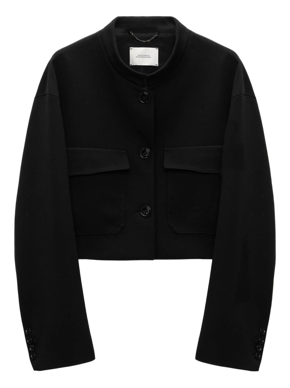 pocketed cropped jacket Highlights - Black - Cropped length - Button fastening - Mandarin collar - Flap pockets - Long sleeves Imported Composition Viscose 67%, Polyamide 28%, Elastane 5% Washing instructions Read Manufacturer Guidelines
