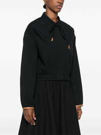 poplin top Highlights - Black - Concealed front button fastening - Self-tie fastening - Chest patch pocket - Elasticated hem Imported Composition Cotton 96%, Elastane 4% Body: Cotton 96% SIZE & FIT Model measurements Height 5 ft 10 in(1.77 m) Bust/Chest 29.92 in(76 cm) Hips 34.25 in(87 cm) Waist 23.62 in(60 cm) FittingInformation Designed for a relaxed fit, this piece allows for comfort and movement when worn The elasticated waist allows for a comfortable fit Made from a midweight stretch fabric, this piece offers elasticity and flexibility when worn