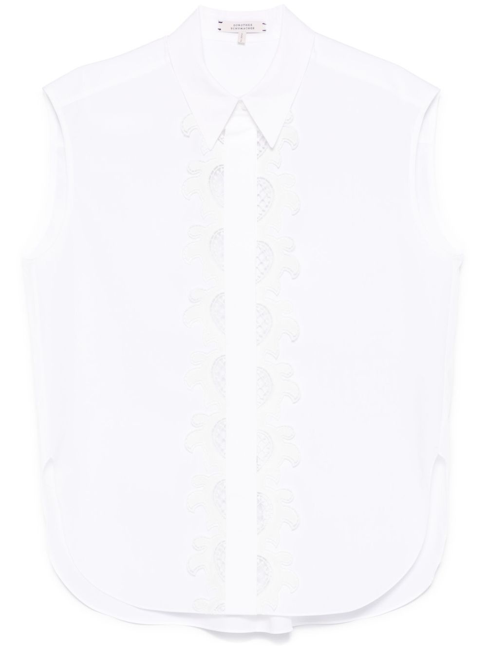 Power blouse Highlights - White - Concealed front button fastening - Classic collar - Sleeveless - Lace panelling Made in United States Composition Polyester 100%, Cotton 96%, Elastane 4% SIZE & FIT Model measurements Height 5 ft 10 in(1.77 m) Bust/Chest 31.88 in(81 cm) Hips 36.22 in(92 cm) Waist 24.01 in(61 cm) FittingInformation Designed to be unstructured, offering a loose fit throughout Made from a midweight non-stretch fabric