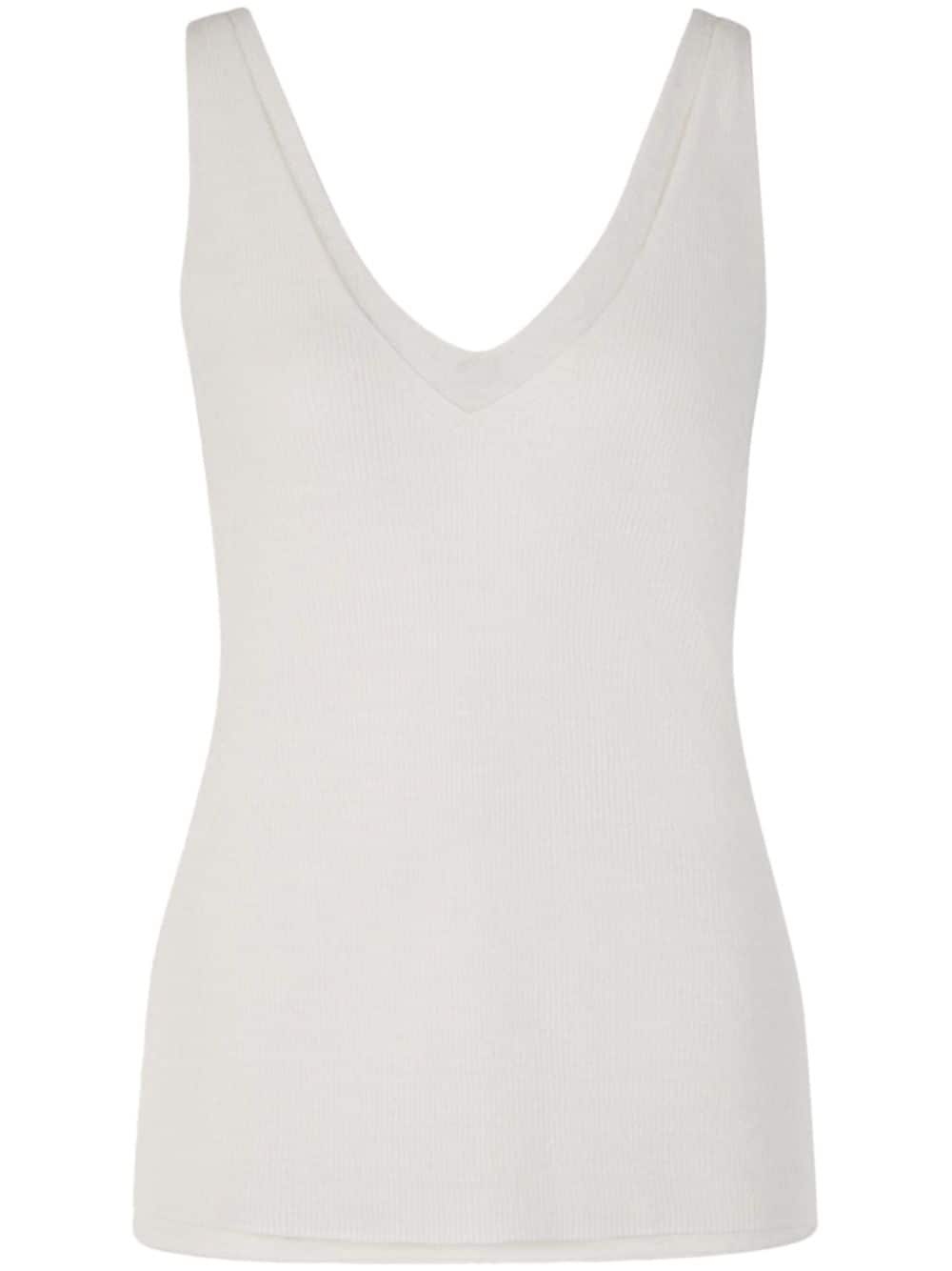 ribbed tank top Highlights - White - Fine ribbed - V-neck - Sleeveless - Straight hem Imported Composition Fabric 100%