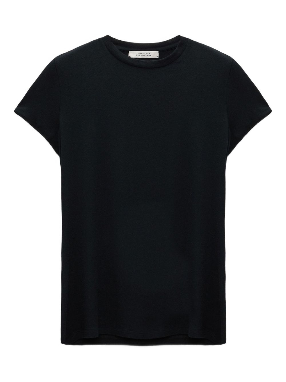 round neck short sleeve T-shirt Highlights - Black - Round neck - Short sleeves Imported Composition Modal 86%, Cashmere 10%, Elastane 4% Washing instructions Read Manufacturer Guidelines