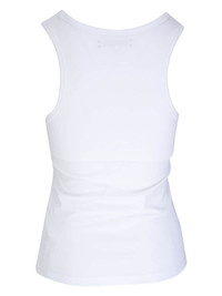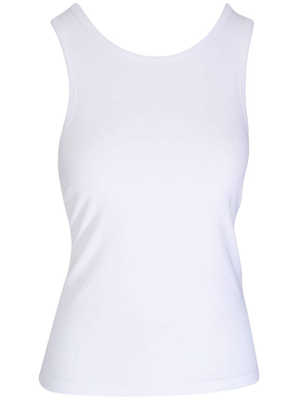 round-neck tank top Highlights - White - Stretch-cotton - Jersey texture - Round neck - Wide shoulder straps - Sleeveless - Straight hem Made in United States Composition Cotton 96%, Elastane 4%