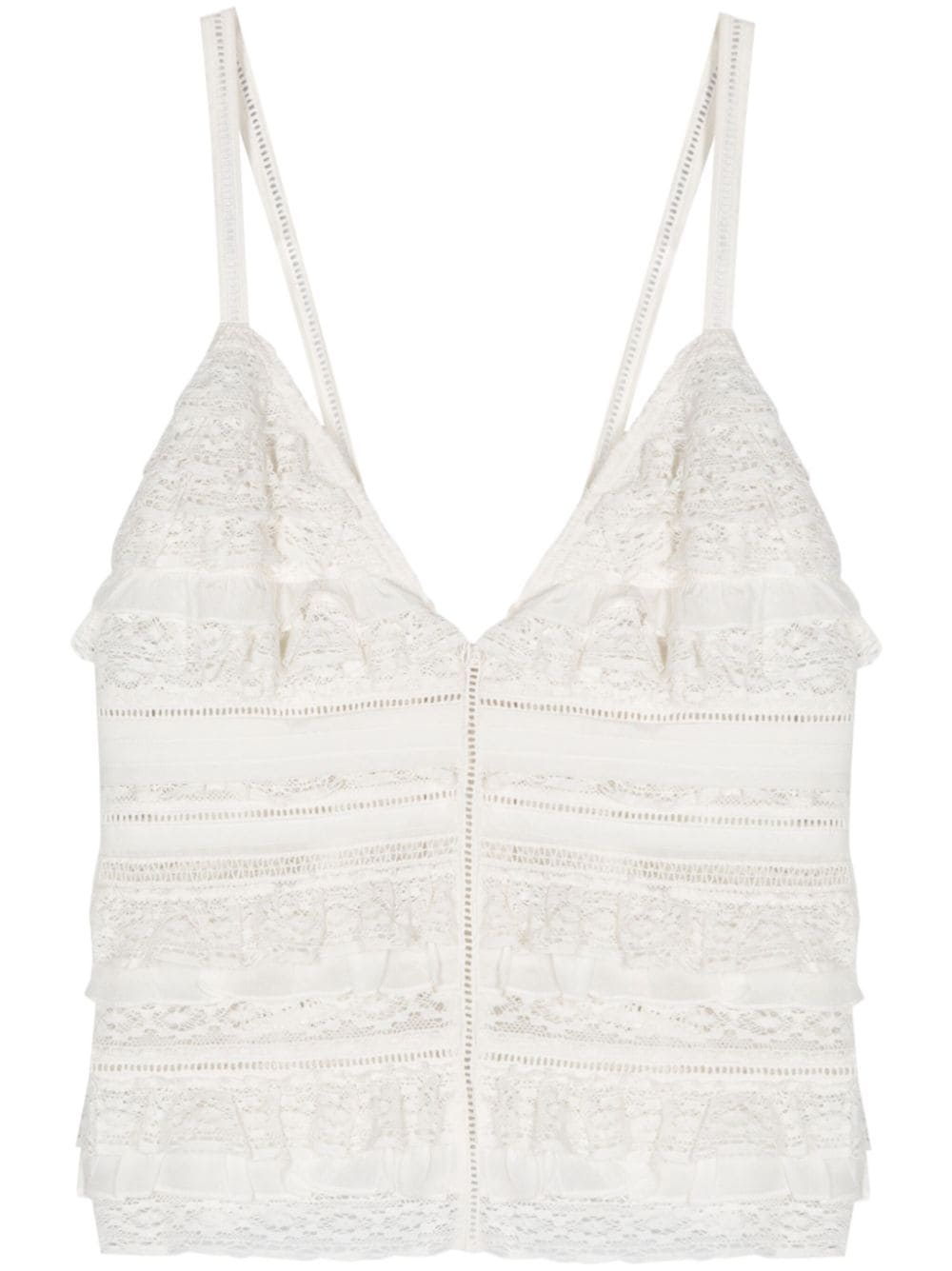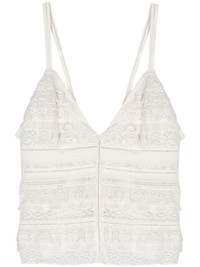 ruffle-detail cotton top Highlights - White - Cotton - Lace detailing - Panelled design - Ruffled detailing - V-neck - Thin shoulder straps - Sleeveless - Open back - Unlined - Rear self-tie fastening Imported Composition Cotton 100% Washing instructions Dry Clean Only