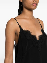 scallop-edge silk tank top Highlights - Black - Silk - Scallop edge - Adjustable shoulder straps - V-neck - Sleeveless - Straight hem Imported Composition Silk 100% Body: Silk 100% SIZE & FIT Model measurements Height 5 ft 10 in(1.78 m) Bust/Chest 32.67 in(83 cm) Hips 35.43 in(90 cm) Waist 23.22 in(59 cm) FittingInformation Designed to be unstructured, offering a loose fit throughout The adjustable shoulder straps allow for a preferred fit when worn Made from a lightweight non-stretch fabric This piece fits true to size – take your usual size