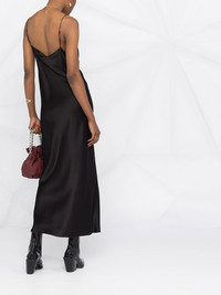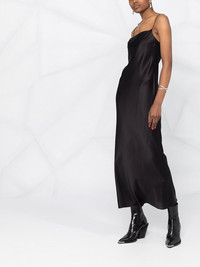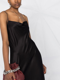 silk midi dress Highlights - Black - Silk-blend - Satin finish - Cowl neck - Adjustable spaghetti straps - Mid-length Imported Composition Silk 95%, Spandex/Elastane 5% Body: Silk 95% SIZE & FIT Model measurements Height 5 ft 11 in(1.8 m) Bust/Chest 31.49 in(80 cm) Hips 36.61 in(93 cm) Waist 24.4 in(62 cm) Measurement HIPS 35.43 in(90 cm) LENGTH 50.78 in(129 cm) WAIST 30.7 in(78 cm) Washing instructions Machine Wash