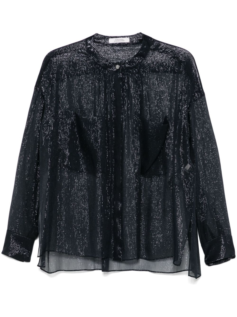 Shimmering Shine blouse Highlights - Midnight blue - Concealed front button fastening - Long sleeves - Buttoned cuffs - Two chest patch pockets Imported Composition Silk 74%, Metallic Fibre 26% SIZE & FIT Model measurements Height 5 ft 10 in(1.77 m) Bust/Chest 32.28 in(82 cm) Hips 35.03 in(89 cm) Waist 25.19 in(64 cm) FittingInformation Designed to be unstructured, offering a loose fit throughout Made from a lightweight non-stretch fabric, this piece offers minimal elasticity when worn