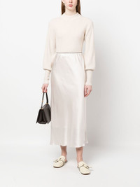 silk midi skirt Highlights - Light beige - Silk blend - Slip silhouette - Slim cut - Elasticated waistband - Pull-on style Imported Composition Outer: Silk 95%, Spandex/Elastane 5% Lining: Polyester 100% Body: Silk 95% SIZE & FIT Model measurements Height 5 ft 8 in(1.73 m) Bust/Chest 33.07 in(84 cm) Hips 35.03 in(89 cm) Waist 24.8 in(63 cm) FittingInformation This piece fits true to size. We recommend you get your regular size Designed to be fitted at the waist and hips, loose over the leg Made with a mid-weight stretch fabric